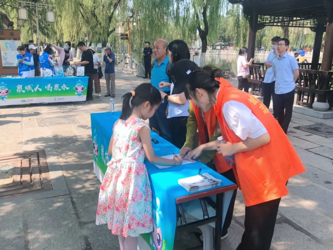 活動現場,有專家學者為大家講解泉水的形成、特點和文化內涵,讓人們更加深入地了解泉水的價值和意義。有文化傳承非遺制藥、茶藝展示者,讓參加活動的學生和教師在參觀走訪百花洲周邊知名泉水景點的同時親身感受泉水帶給城市的美好和靈氣,還有面帶微笑的文明創建志愿者們在現場開展引導咨詢、應急服務、愛心幫扶等文明實踐和志愿服務,為弘揚志愿精神凝聚文明力量,為文明城市建設添磚加瓦。