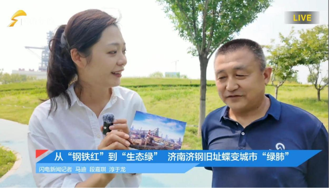 直播中,記者現場采訪了游園的周邊居民、濟鋼老職工以及跑團愛好者,直言中央森林公園已成為周邊廣大群眾休閑、露營、健身的好去處,切身感受到濟鋼舊址這片工業區翻天覆地的變化。